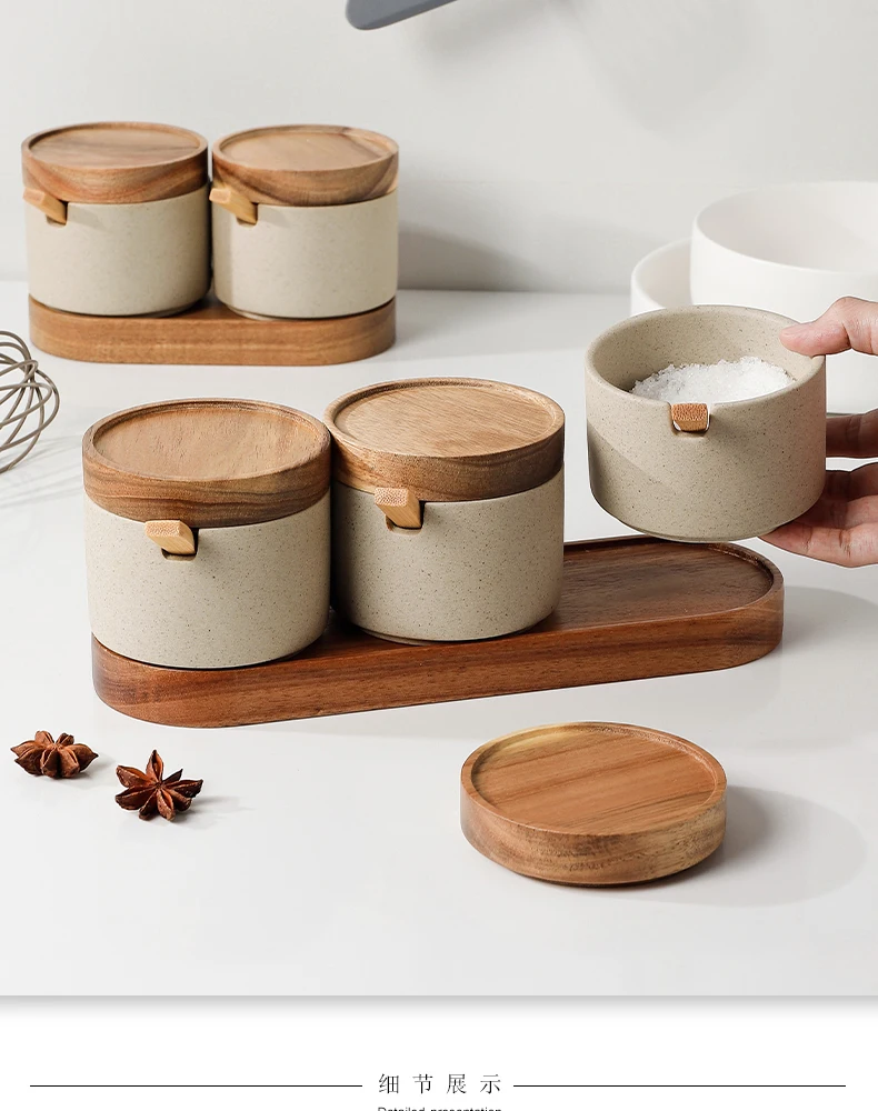 Modern Ceramic Seasoning Jar Set Household Kitchen Sugar Salt Jar with Lid Jar Large Capacity Food Storage Box Kitchen Container